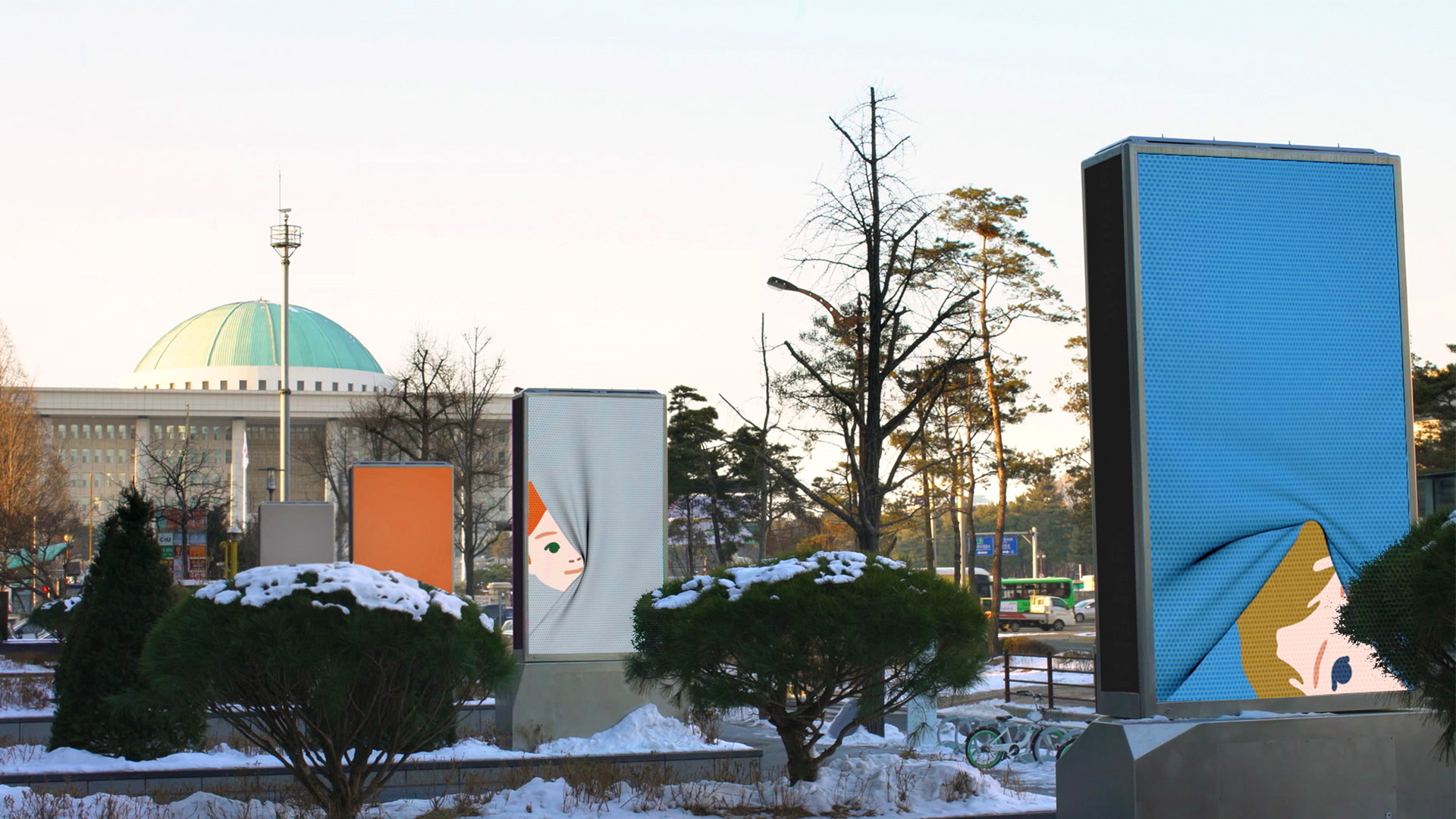Considering the peculiarities of the region and the people, Habitant made two works by setting lighter tenderness and vitality than the art of simple aesthetic value to the production of works. People who walked through the area with expressionless faces and fast steps glanced at the smiling child’s face and the color of powerful expansion.